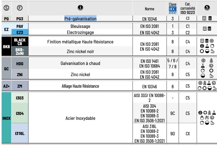 Les chemins de câbles sont classifiés par rapport à leur catégorie de corrosivité allant de C1( très faible ) à C5 ( très élevée ) . C'est pour cela que Midifix vous propose plusieurs systèmes de protection en fonction de l'environnement de votre installation :