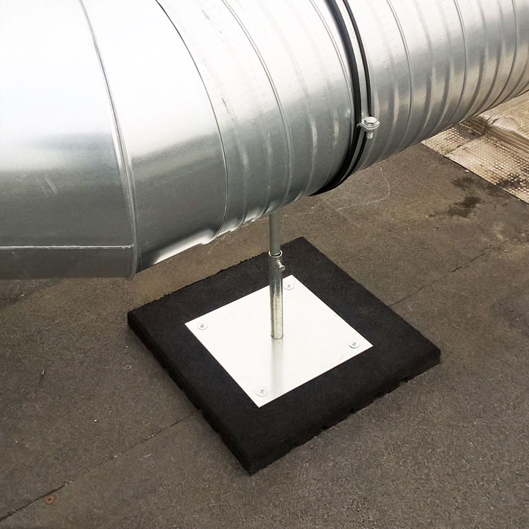 Une plaque en caoutchouc durable qui peut être directement posée sur le toit plat afin de le protéger de dommages éventuels consécutifs aux passages fréquents ou aux chutes d’équipements auxiliaires.