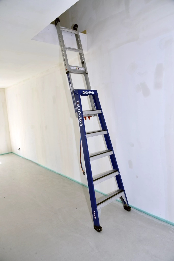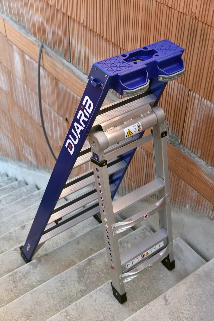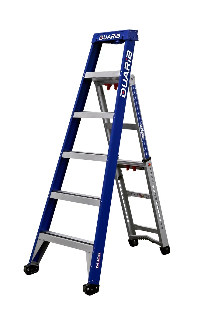 MX5 , l'escabeau 5 en 1 de chez Duarib : Passez d'une utilisation à l'autre en un clic .