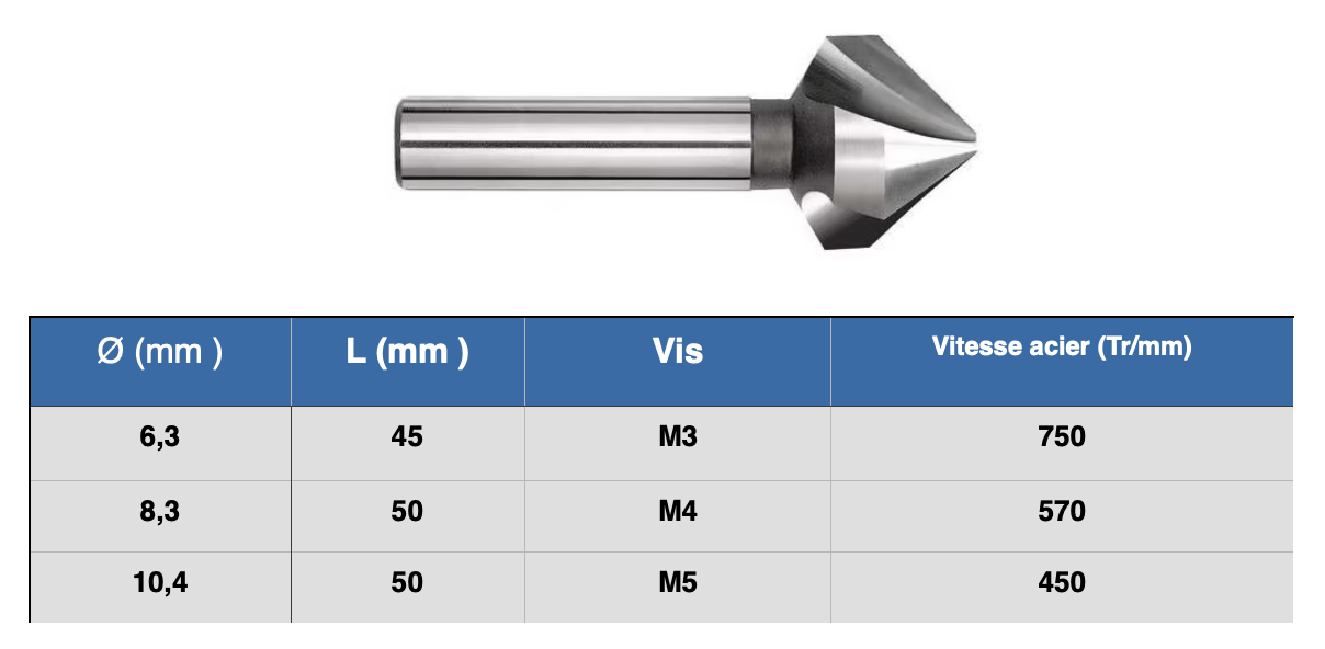 Choisissez la taille de votre Fraise à ébavurer HSS 3 dents 90°