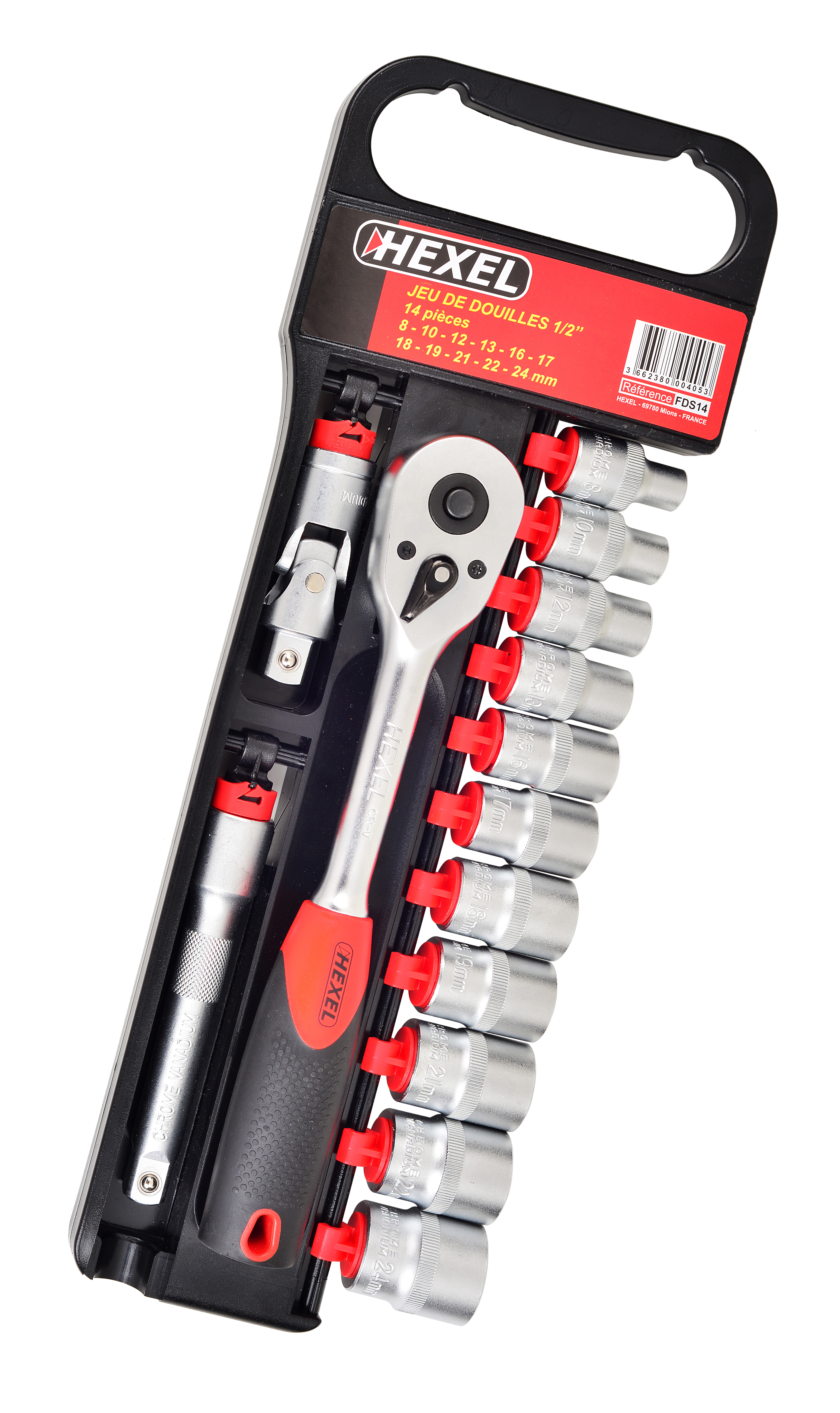 Jeu 14 douilles 1/2 8 à 24 mm avec cliquet Hexel FDS14