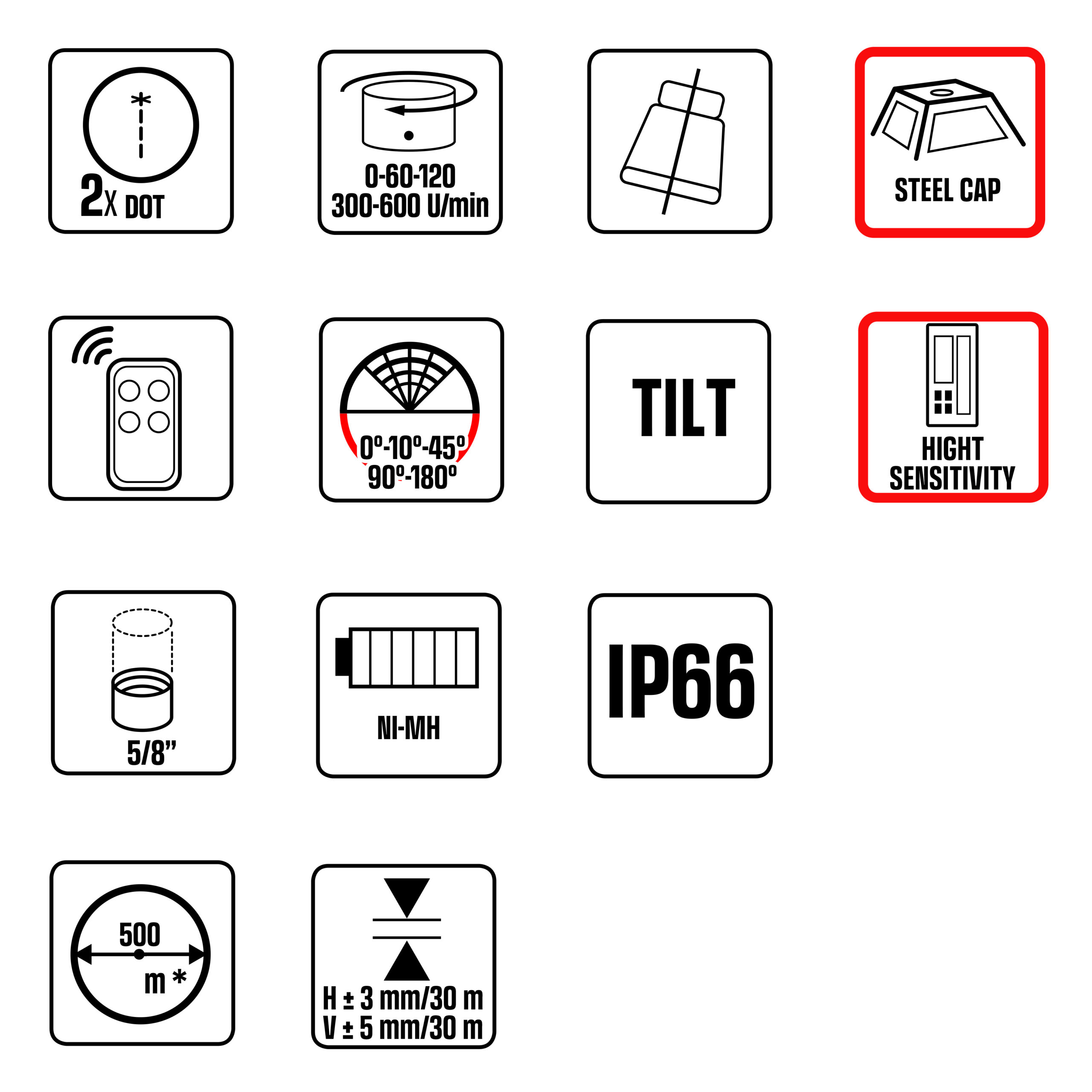 Fonction TILT: en cas de déplacement involontaire de l’appareil, le faisceau laser s’arrête