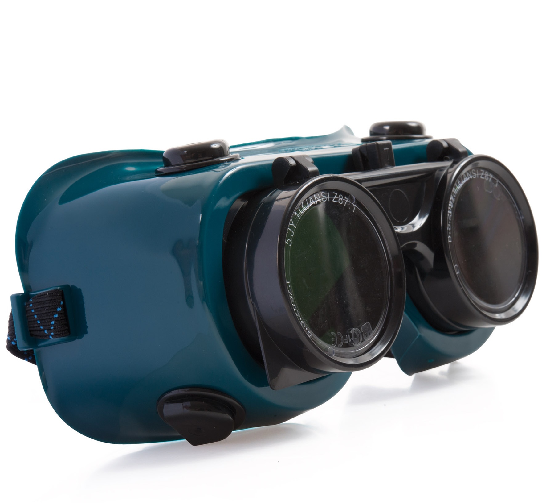 Cadre porte-verres en polycarbonate équipé d'oculaires en polycarbonate et avec dispositif relevable équipé d'oculaires teinte 5 et verre polycarbonate de garde.