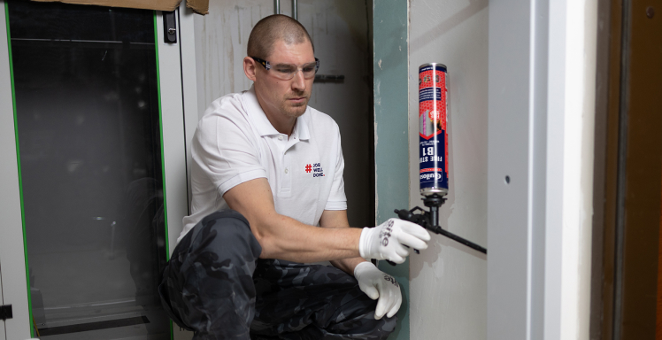 La mousse coupe-feu limite la propagation des flammes et des fumées toxiques entre les compartiments d’un bâtiment.